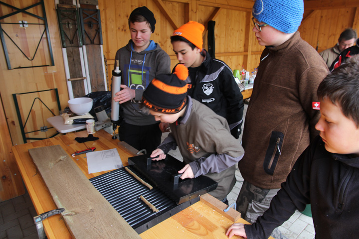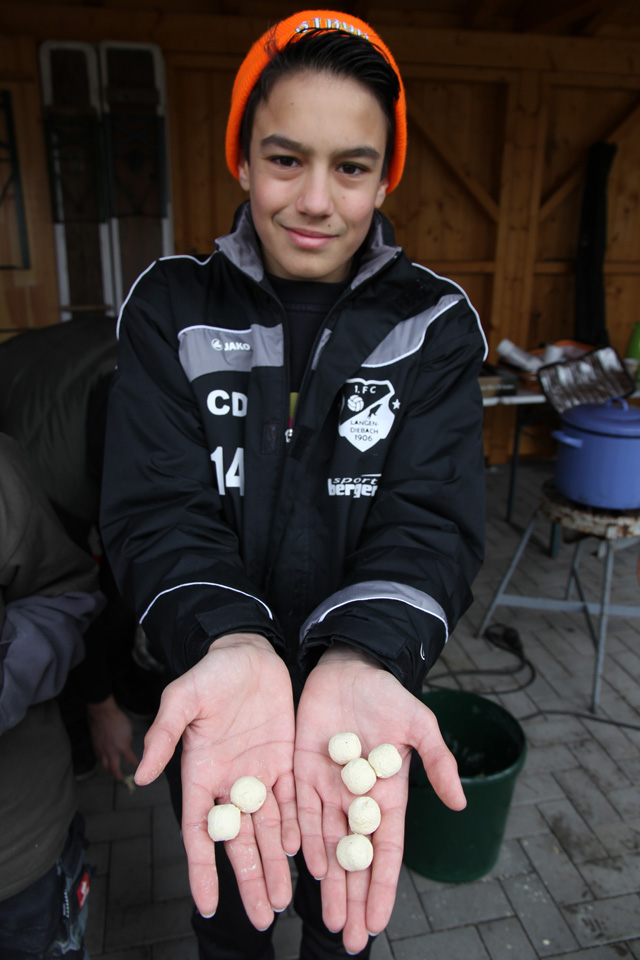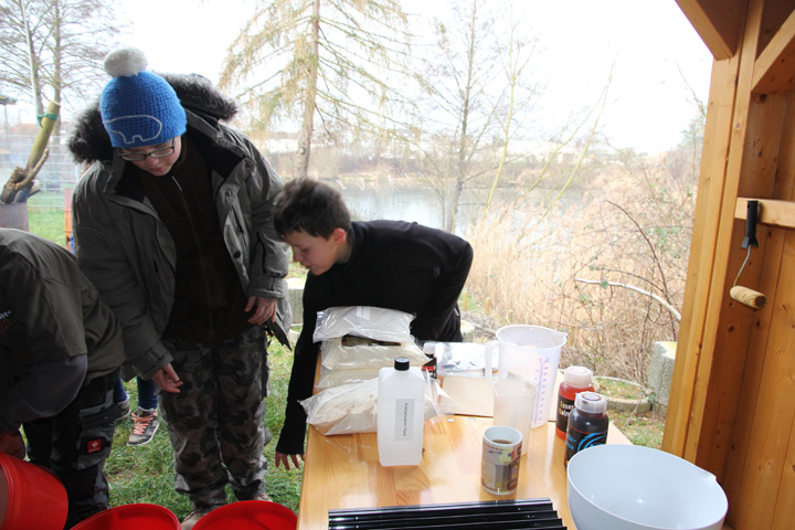 Für die Initiatoren und Helfer war es toll zu beobachten, wie viel Spaß die Jugend beim Selbermachen hatte. Zu keinem Zeitpunkt war es den Junganglern zu kalt, zu anstrengend, zu stinkig oder etwa zu langweilig. Im Gegenteil, selbst als die eigens vom Verein angeschaffte Boiliegun nach kurzer Zeit den Geist aufgab, ließ sich die Bande nicht stoppen. Sie rollten einfach gemeinsam den Teig von Hand zu Würsten. Perfektes Teamwork. Alle arbeiteten zusammen auf das gleiche Ziel hin, nämlich ihre ersten selbst gemachten Boilies sofort am Vereinssee auszuprobieren – klasse.