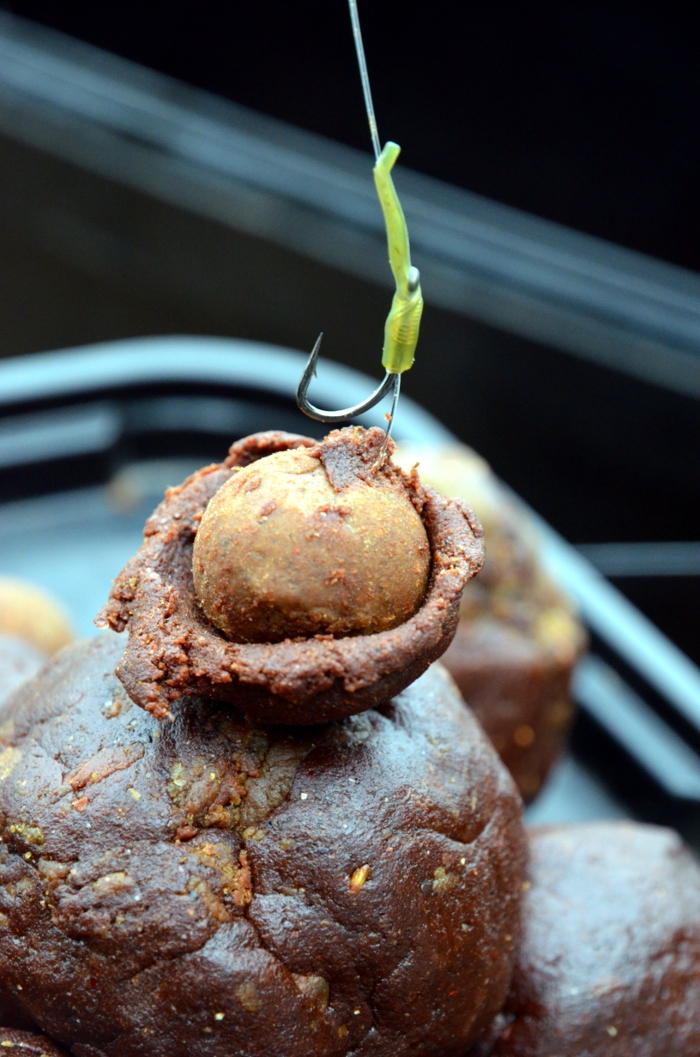 (Mit Teig aus dem Hause Naturebaits ist vieles möglich. Kocht man den Hakenköder wird der Teig hart und umhüllt den Boilie – dank Nyco Meth 2000 inside)