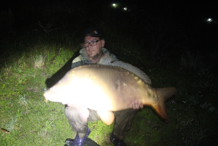 Aufgrund des Widerstandes hoffte ich auf einen der Größeren im See. Ich sollte recht behalten und nach einiger Zeit kescherte ich eine schwergewichtige Schuppendame. Genauso verdutzt wie beim Aufstehen schaute ich ungläubig in den Kescher, nach fast 4 Jahren war der Fisch wieder im Kescher. Ein Fisch der zu den größten 3 im See gehört, jenseits der 25+ Kategorie. Unpackbar, meine Bemühungen hatten sich gelohnt. Happy schlief ich wieder ein und war einfach froh am Wasser zu sein.