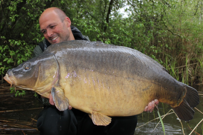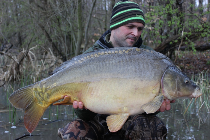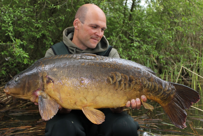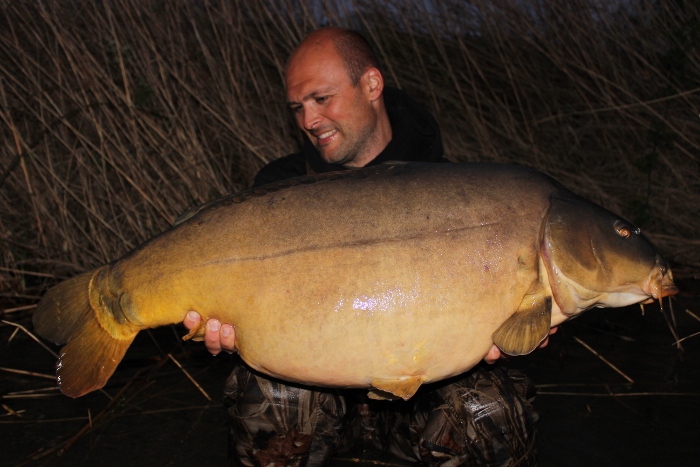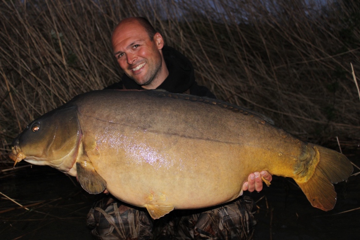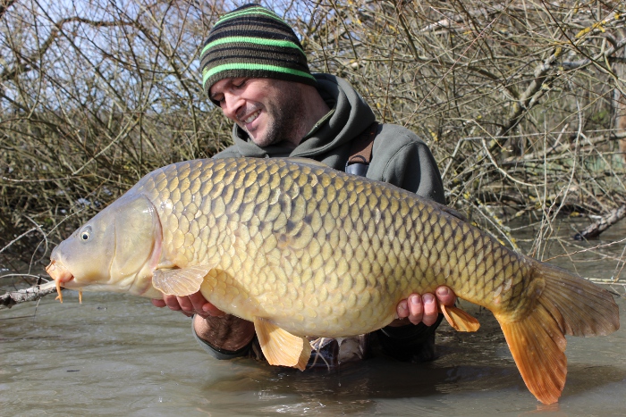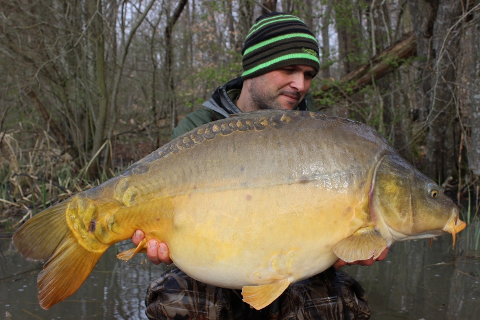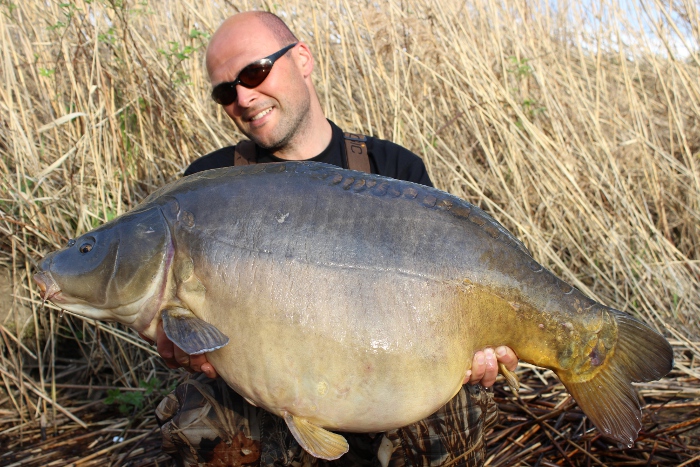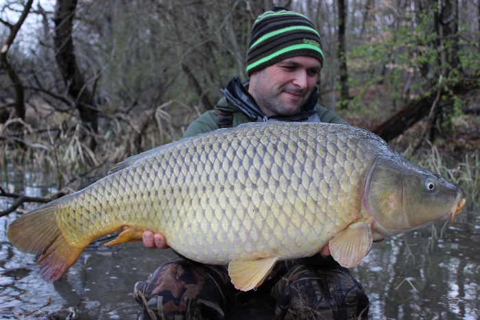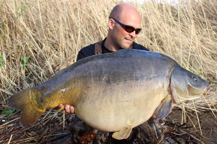 (Dieser Karpfen war noch voll mit Laich und brachte einige Kilos auf die Waage…)