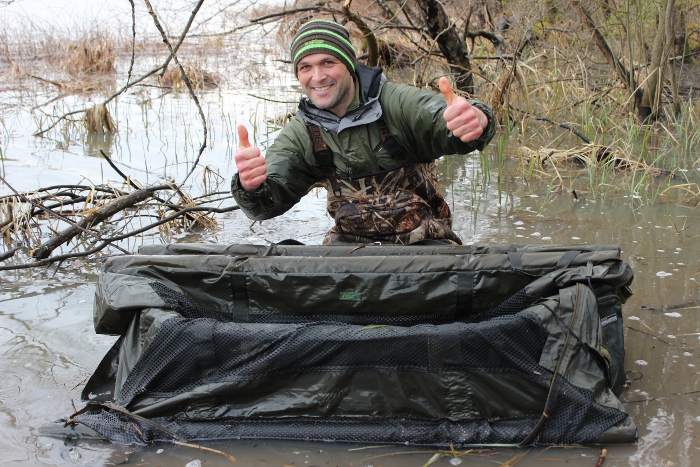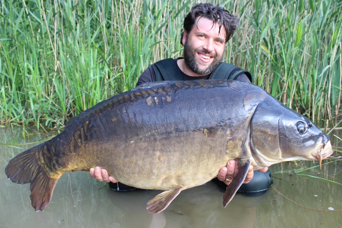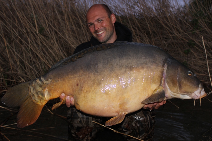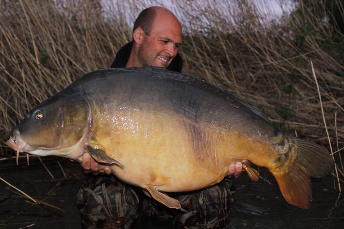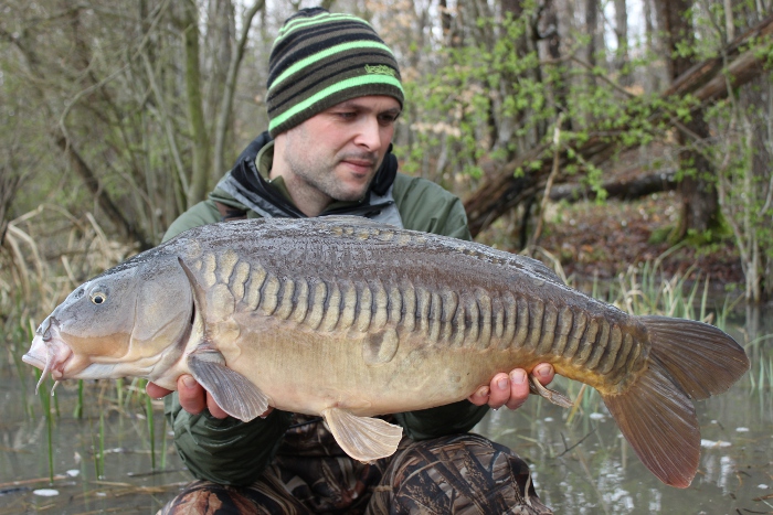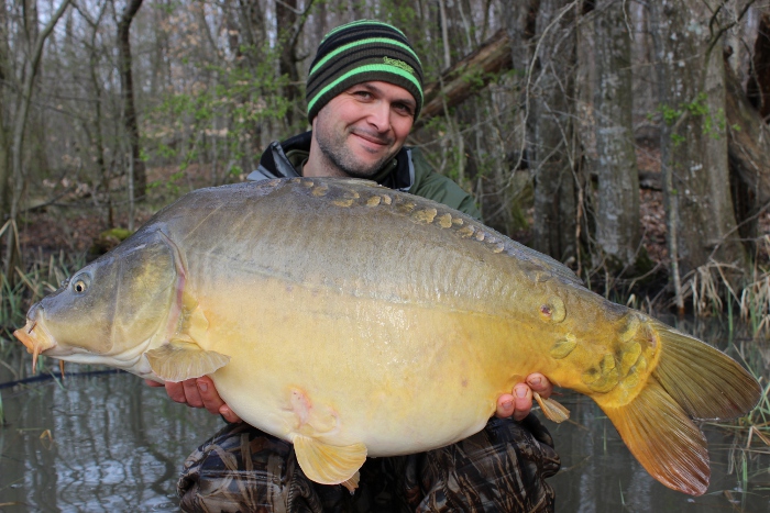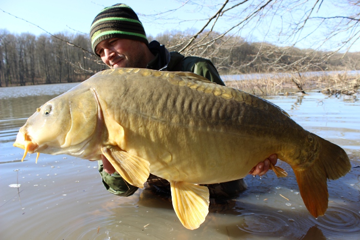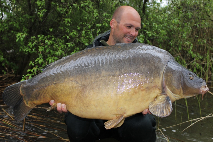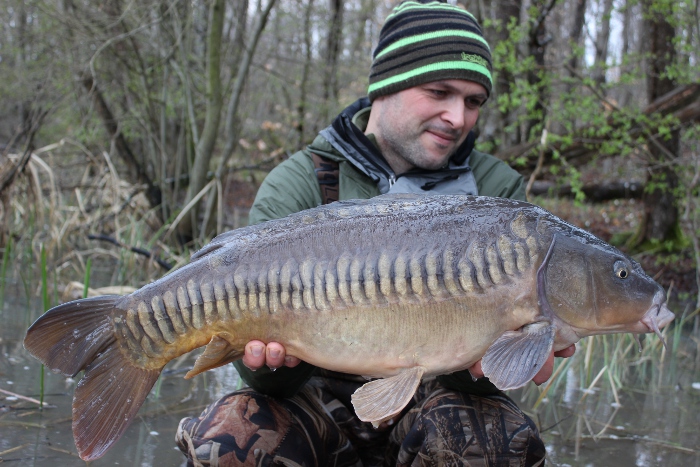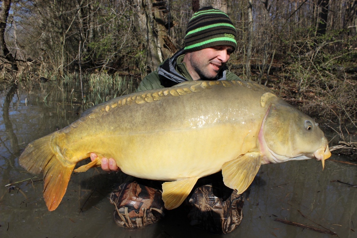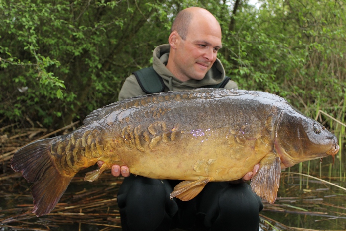 (Dieser Karpfen war noch voll mit Laich und brachte einige Kilos auf die Waage…)