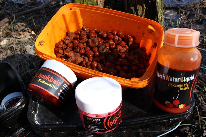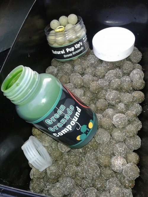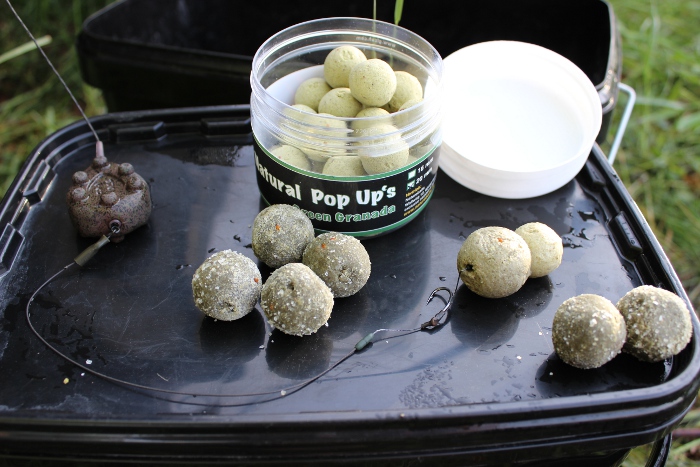 (Green Granada Boilies und die dazu passenden PopUps sind eine fängige Kombination)
