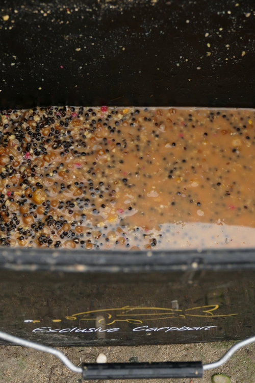 Mit den immer kälter werdenden Wassertemperaturen reduzierte ich meine Futtermengen die letzten Tage soweit, dass ich aufs Vorfüttern komplett, und in den sechs Angelstunden nach den Nachtschichten ebenfalls auf „festes“ Beifutter verzichtete. Über meine Hakenköder leerte ich fortan nur noch einen Eimer Brühe (zusammengesetzt aus ein-zwei Kilo Staubfutter, einem Schluck Dosenmilch und einer kleinen „Schippe“ voll Hanfpampe), und bestückte meine Rigs mit Fakedosenmaiskörnchen und kleinen yellowlightning Popups. Die Fische nahmen die kleinen Leckerlies dankend an…