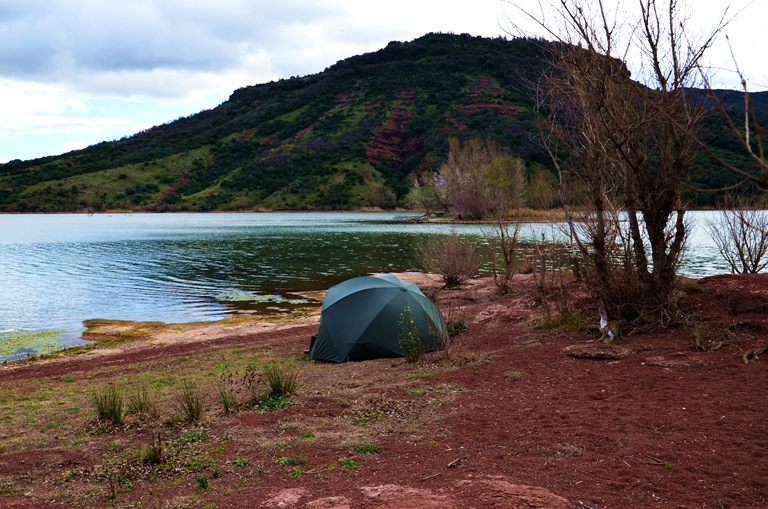 Naja was soll ich sagen, er verlor am Abend den einzigen Fisch, der an seinem Haken hängen blieb. So ist es eben wenn man anderen auch nichts gönnt… Ich trocknete derweilen meine tropfenden Sachen und genoss die letzten Sonnenstrahlen.