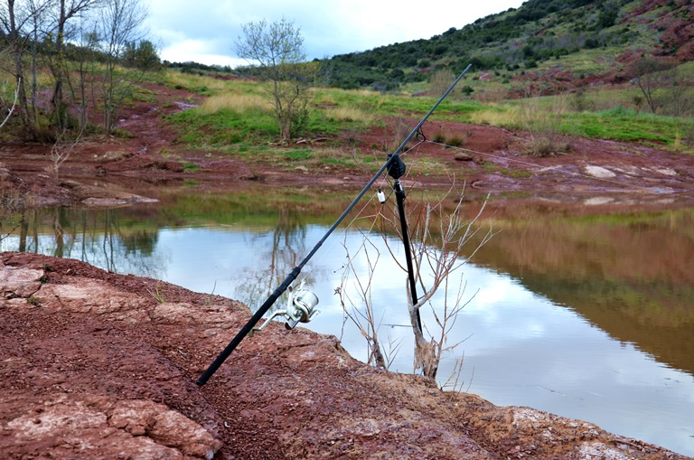 Erst jetzt im Hellen fiel mir auf, dass sich die Schnur teilweise am Ufer durch die Felsen lief. Naja, erstmal egal da ich eh nach dem Frühstück erstmal einpacken und den See bzw. die Gegend erkunden wollte. Doch bevor ich überhaupt mit dem Frühstück beginnen konnte, piepte es an eben dieser einen Rute.