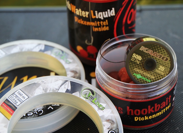(Dicke Schlagschnur, dickes Vorfach und harte Hookbaits genau das richtige Material für diese Art der Angelei.)