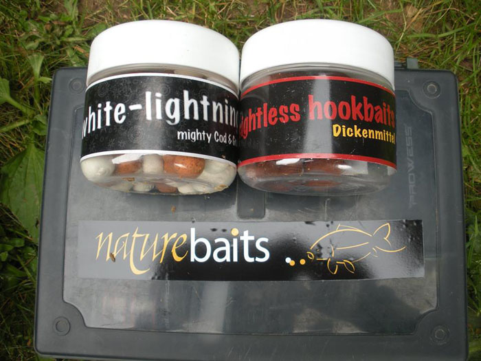 Freitag ging es ans Wasser, um 18 Uhr lagen die Ruten. Beködert hatte ich zwei Ruten mit LT Fisch Boilies ummantelt mit Dickenmittel-Teig, an die anderen beiden hing ich einen 30 mm Dickenmittel Sinker und einen 24 mm Weightless Hookbait.