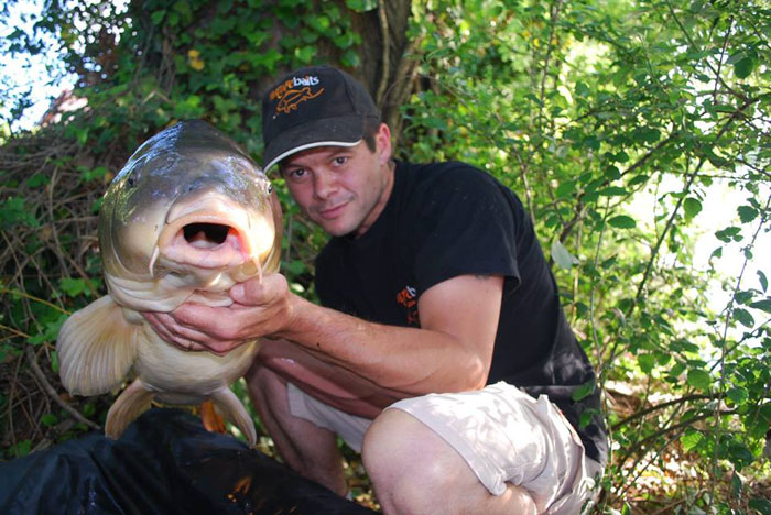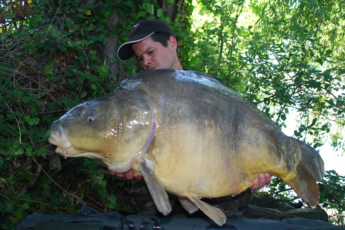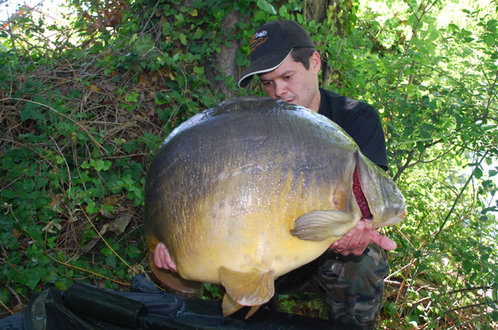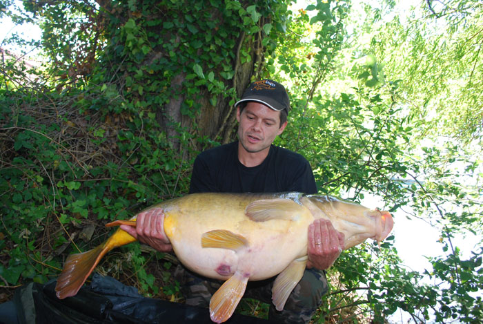 Nach dem sich die Aufregung bei uns am Ufer gelegt hatte, biss tatsächlich noch ein weiterer Dicker. Napoleon, ein echtes Original des Flusses gab sich die Ehre- ebenfalls über 20 Kilo schwer. Niemals hätte ich es für möglich gehalten, was für Großfisch-Serien mit guten Boilies möglich sind – unglaublich.