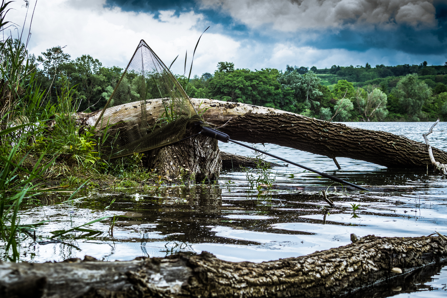 Noch im Kescher befreie ich den kleineren vom Haken und lasse ihn direkt wieder schwimmen. Den Dickeren packe ich schnell in die Schlinge, um die Ruten wieder neu auszulegen. Ich hatte irgendwie so ein Gefühl… Den Single Bait werfe ich wieder ohne Futter etwa mittig zu den beiden Plätzen.