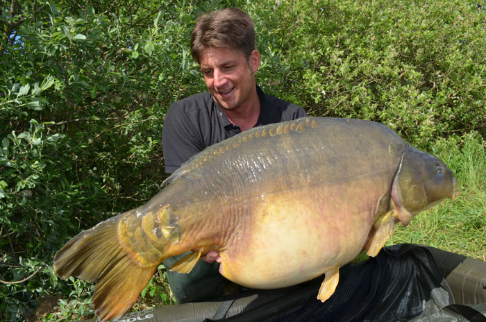 (Andreas Paul ist bekennender Selbstroller und vertraut u.a. auf den Freshwater Mix von Naturebaits. Mit diesem franz. Riesen unterstreicht er die Fängigkeit der „Zaubermurmeln“.)