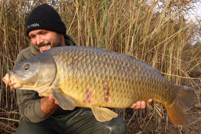 Übrigens setzt Romeo das ganze Jahr lang auf die selben Köder. Echte Winterboilies – was auch immer das sein ma – benutzt er nicht. Auch jetzt war er wieder mit den GLM Boilies erfolgreich. Allerdings verwendet Romeo im kalten Wasser gerne Liquid, Bait Attractor & Co. Darauf verzichtet er lieber in der warmen Zeit, da ihm in den gut besetzten Seen seiner Heimat die Weißfische dann zu nervig sind.