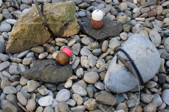 (Ich setzte schon im März auf große Köder und Steine, die die Rigs auch bei weiter Distanz an Ort und Stelle halten.)