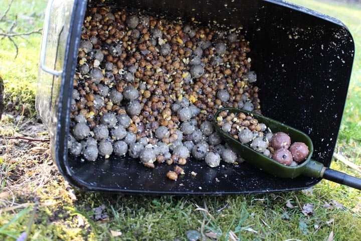 Der Anfang war gemacht, beide Spots schienen produktiv zu sein. Nun war es an der Zeit die Taktik zu wechseln. Die kleine Einlage des „Dirty Bucket“, die mir bis dato als Dosierung für die Futtermenge diente, musste weichen. Die dicken Eimer mussten her, die bereits im Auto bereit lagen. Ich wechselte mein Futter. Setzte ich anfänglich auf ein paar Partikel und Boilies, fütterte ich nun ausschließlich „Glm Boilies“ zwischen 12 bis 20 mm, einen größeren Teil „Tigers“ und eine Handvoll 24 mm „Dickenmittel“ Boilie. Alle zwei bis drei Tage fütterte ich circa 2-3 kg und der erste Probelauf auf den Plätzen sollte mir Recht geben. Er brachte Fisch.