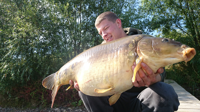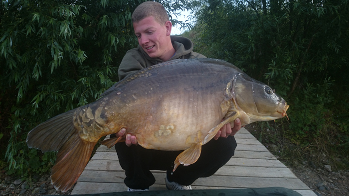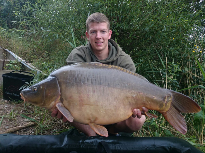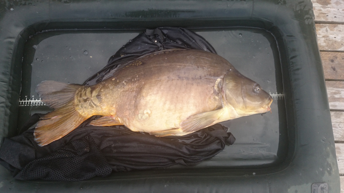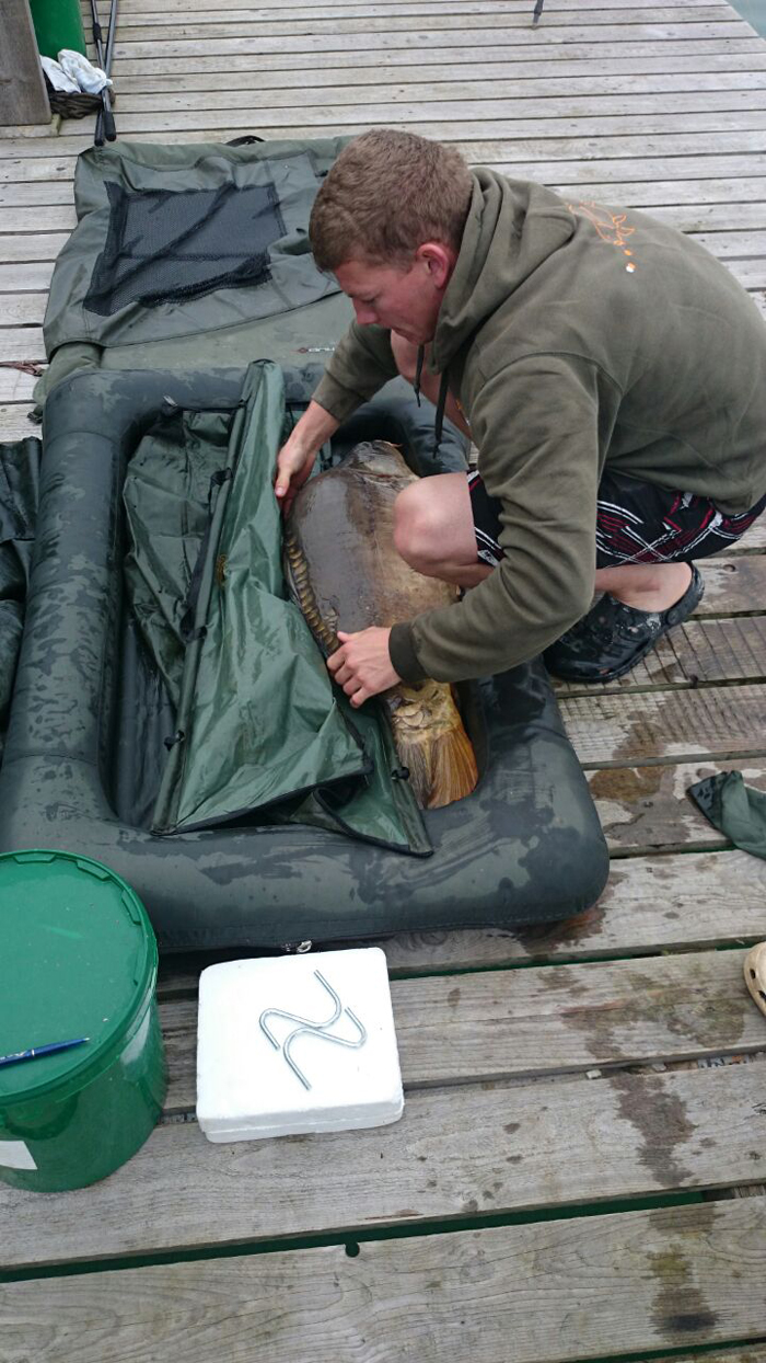 Ende Juni lief es dann richtig gut an: Ich wusste ungefähr wo ich die Wunderkugeln verteilen muss und auf was meine Lieblinge abfahren. Dadurch steigerte sich der Erfolg und ich fing einige Fische aus dem Altbestand, die sich sehen lassen konnten. Ich war auf dem richtigen Weg! Das Dickenmittel auch ein Langzeit-Köder ist, bewies mir ein Spiegler der hohen 30-Pfund-Klasse, den ich innerhalb von 3 Wochen 3 mal fangen konnte. Die Fische standen so auf mein Futter, dass ich teilweise schon 5 Minuten nach dem Ablegen einen Vollrun bekam… Das war es, was ich wollte! Ich entschloss mich nach einem 0:1 Sieg für die Fische, bei dem ich vor den Augen meiner Verwandten einen guten Fisch kurz vor dem Kescher verlor, auch unter der Woche anzugreifen. Nachts Angeln, früh um 5 Uhr aufstehen, zusammenpacken und um 6 Uhr wieder auf Arbeit erscheinen. So sah nun mein Alltag aus. Eine lohnenswerte Entscheidung wie sich heraus stellte. Schon in der ersten Nacht unter der Woche konnte ich 4 Fische verbuchen, sogar ein richtiges Brett. Natürlich habe ich die Fotos gleich gemacht, zum Sacken war keine Zeit.