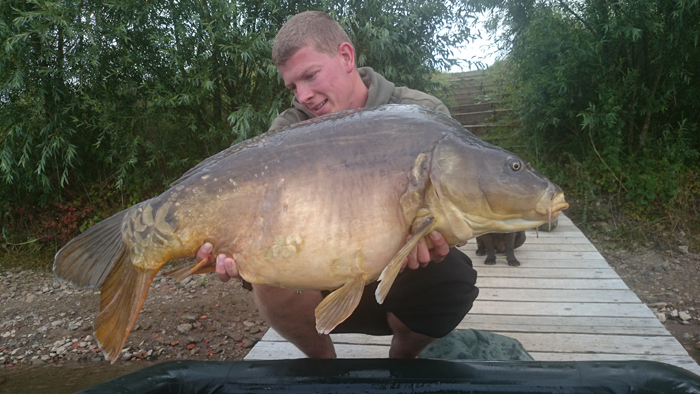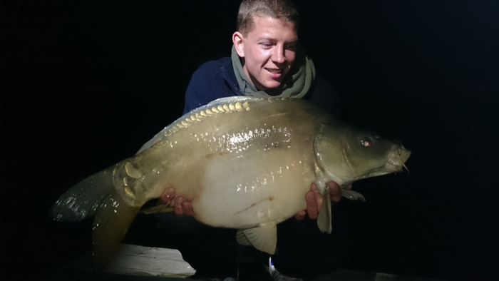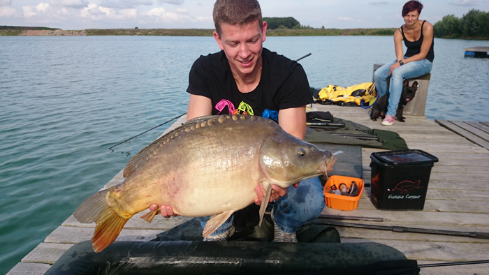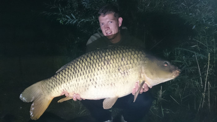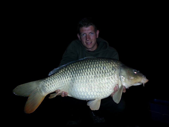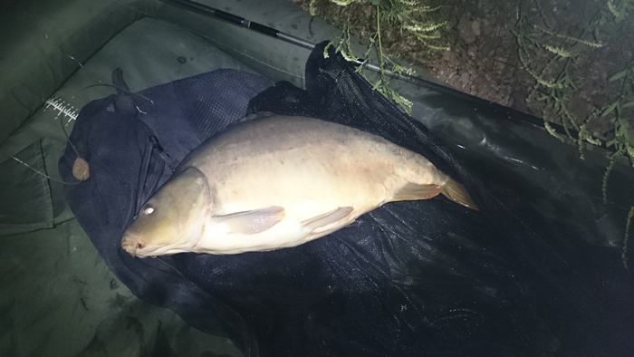Ende Juni lief es dann richtig gut an: Ich wusste ungefähr wo ich die Wunderkugeln verteilen muss und auf was meine Lieblinge abfahren. Dadurch steigerte sich der Erfolg und ich fing einige Fische aus dem Altbestand, die sich sehen lassen konnten. Ich war auf dem richtigen Weg! Das Dickenmittel auch ein Langzeit-Köder ist, bewies mir ein Spiegler der hohen 30-Pfund-Klasse, den ich innerhalb von 3 Wochen 3 mal fangen konnte. Die Fische standen so auf mein Futter, dass ich teilweise schon 5 Minuten nach dem Ablegen einen Vollrun bekam… Das war es, was ich wollte! Ich entschloss mich nach einem 0:1 Sieg für die Fische, bei dem ich vor den Augen meiner Verwandten einen guten Fisch kurz vor dem Kescher verlor, auch unter der Woche anzugreifen. Nachts Angeln, früh um 5 Uhr aufstehen, zusammenpacken und um 6 Uhr wieder auf Arbeit erscheinen. So sah nun mein Alltag aus. Eine lohnenswerte Entscheidung wie sich heraus stellte. Schon in der ersten Nacht unter der Woche konnte ich 4 Fische verbuchen, sogar ein richtiges Brett. Natürlich habe ich die Fotos gleich gemacht, zum Sacken war keine Zeit.