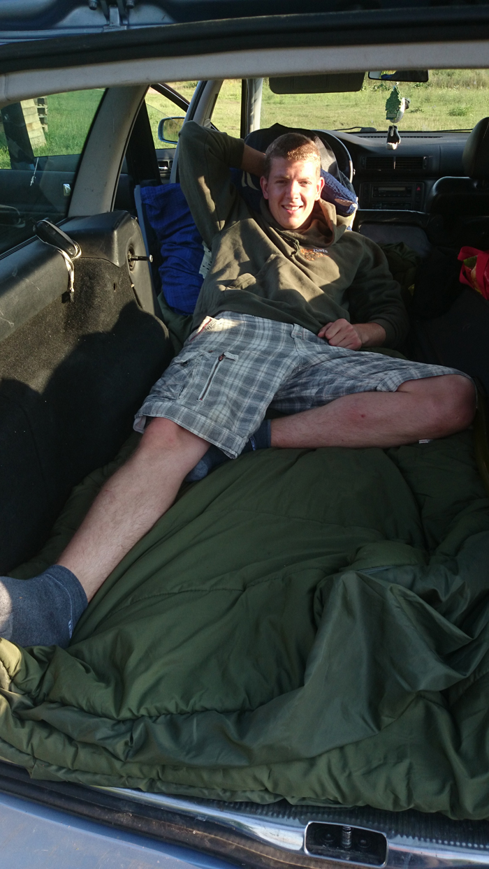 (Links: Während der Overnight-Sessions pennte ich auch schon mal im Auto. Rechts: wieder einer auf der Matte – safety first.)