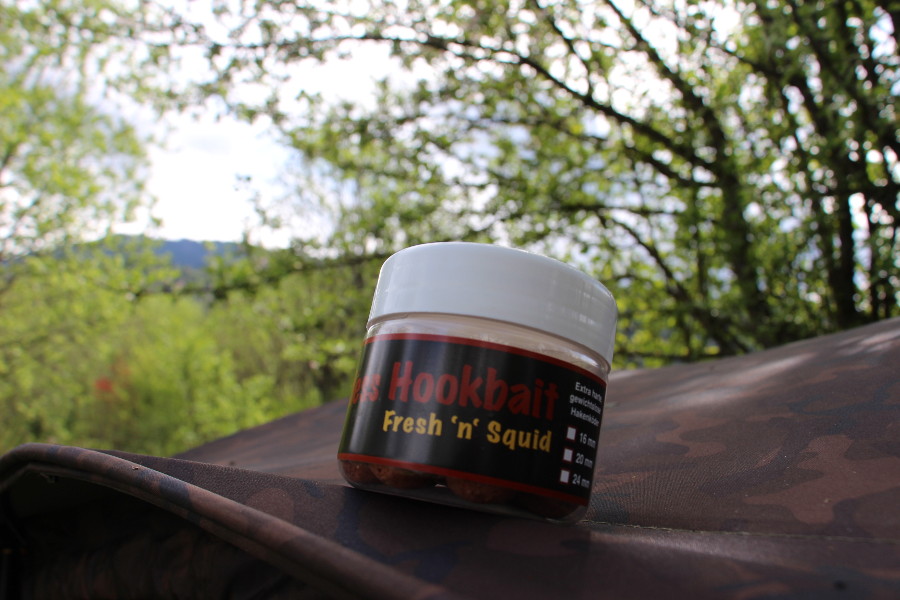 Ich entschloss mich zu meinem Hausgewässer zu fahren das in diesem Fall über 100 Kilometer entfernt ist. Der Platz war schnell bezogen denn hatte ja nicht viel mit für ein Wochenende. Und da ich mein Invader 2.1M aufgeblasen im T6 transportiere – spart mir auch das enorm viel Zeit. Zwei Ruten beköderte ich mit 24mm WSC Hookbaits und eine Rute mit 24mm Fresh‘n Squid Hookbait. Ich füttert gemischt mit 20 und 24mm WSC und Fresh‘n Squid Boilies an.
