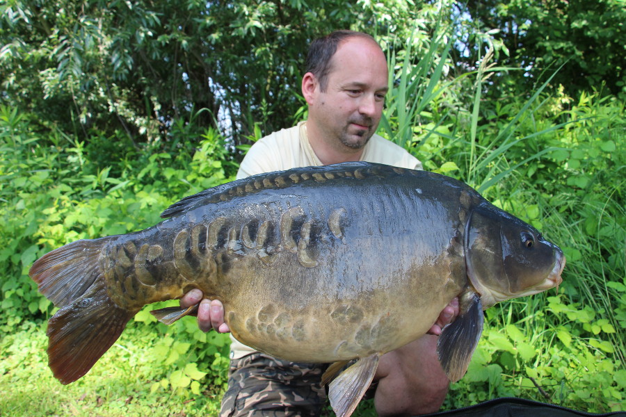 Aber es sollte nicht der letzte am Wochenende bleiben. Der Nachmittag und die Nacht verliefen wieder sehr ruhig, so konnte ich wenigstens einmal schön ausschlafen. Am Morgen meldete sich wieder eine meiner Ruten mit den WSC Boilies. Und was für eine Schönheit von Beauty drauf gebissen hatte. Es sind schon einige Schätze im Gewässer. Und so neigte sich das Wochenende dem Ende entgegen, ich konnte wieder zwei schöne Fische fangen und hatte einen harten Drill mit einem Waller.