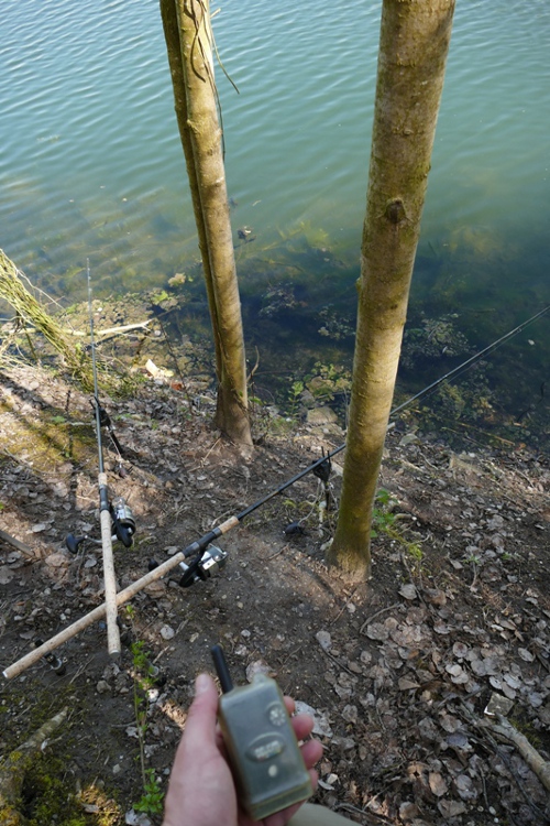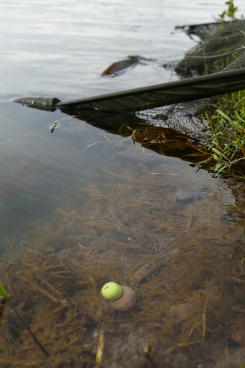 (Wenn was biss, dann nur auf Schneemänner in groß. Kleine Köder, und das wunderte mich ehrlich gesagt, wurden nicht genommen… Hier eine meiner Lieblingsköder. Ein neutral wirkender Poppi, in Verbindung mit einem -mit dem Messer bearbeiteten- 24er Bloodwormbollen, um den Köder minimal anzuheben dass nur noch der Haken den Boden berührt…..)