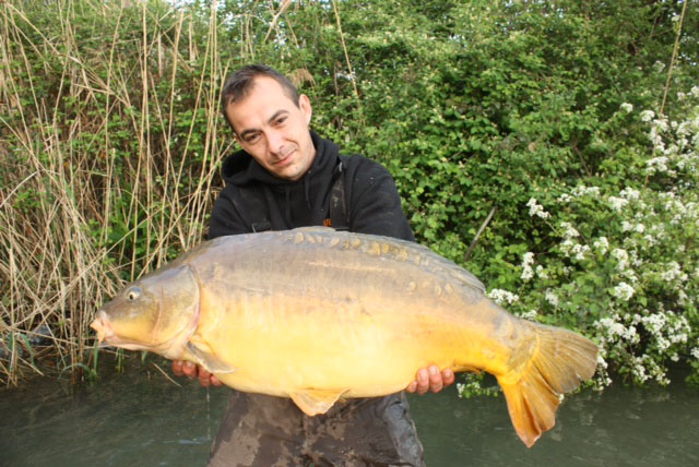 (Yohan Francillion mit einem sehr jungen, aber schon überaus gewichtigen Spiegler. Wer weiß, vilt. wird er zum nächsten Riesen heranwachsen.)