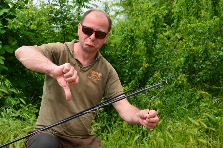 Jetzt ratet mal was passierte – genau, es ließ sich links ein Karpfenangler nieder. Doch es kam noch besser auch auf die erfolgreiche rechte Seite setzten sich im Laufe des Abends 3 weiter :-(…