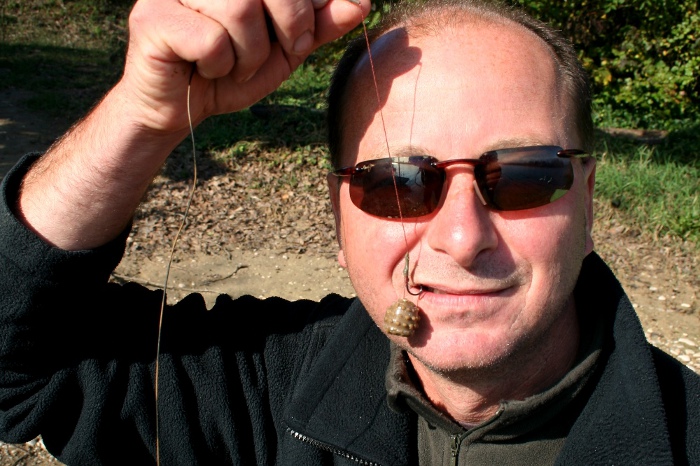 (Schritt 4: „Boilie-Igel“ aufs Haar montieren, überprüfen ob der „Midge-Haken“ aus dem Hause Jokerbaits gut dreht, die Rute ablegen und warten was da kommen möge.)