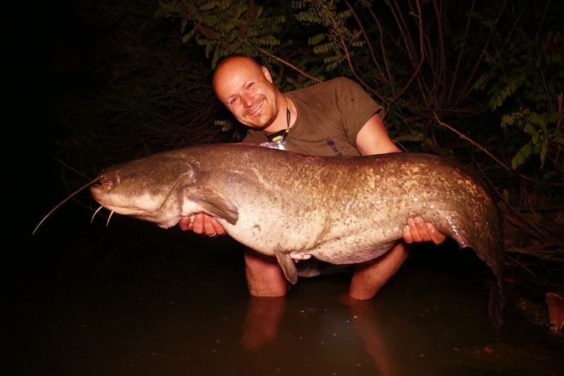 (Der erste Fisch des Trip, definitiv ne interessante Sache dieses Wallerangeln 😉…)