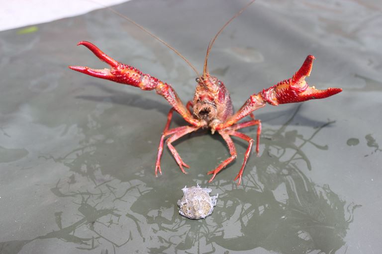 Als wir am 8. Tag dann nachts sahen was los war wurde uns einiges klar. Die Krebsbrut war am schlüpften und an jedem Krauthalm, unter jedem Stein, einfach überall waren die „kleinen Scheißer“. Das war natürlich ein Festmahl für die Karpfen.