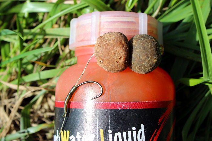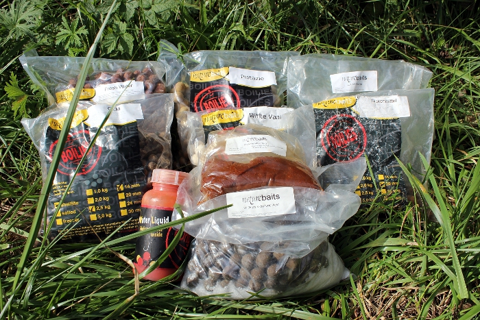 Außer einer kleinen ca. 1×1 Meter harten Stelle, in etwa 1,2m Tiefe und kurz vor einem Seerosenfelder konnte ich nichts Auffälliges finden. Die Erste von drei Ruten also dort abgelegt, die zweite Rute ufer nah und die dritte Rute als Falle zwischen zwei Seerosenfelder, da wir vermuteten das die Karpfen dort entlang zogen. Gefüttert wurden GLM- und Fisch-Buttersäure Boilies. Außer die Ufernahe Rute, die bekam den White Vanille.