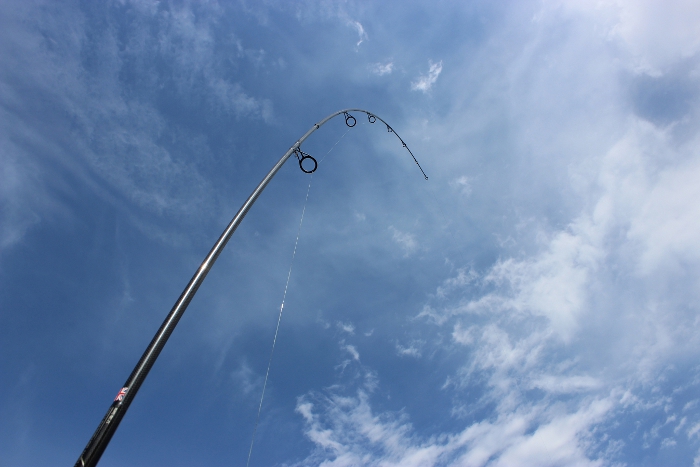 Völlig fertig hauten wir uns wieder auf die Liege und schliefen beide schnell wieder ein. Nur nicht lange denn der Delkim spielte erneut sein Lied. Der Fisch ließ sich ohne große Gegenwehr ein kurbeln, kurz vor dem Kescher machte er noch eine kleine Flucht, die sich aber schnell stoppen ließ und so umschlossen ihn kurze Zeit später die Maschen.