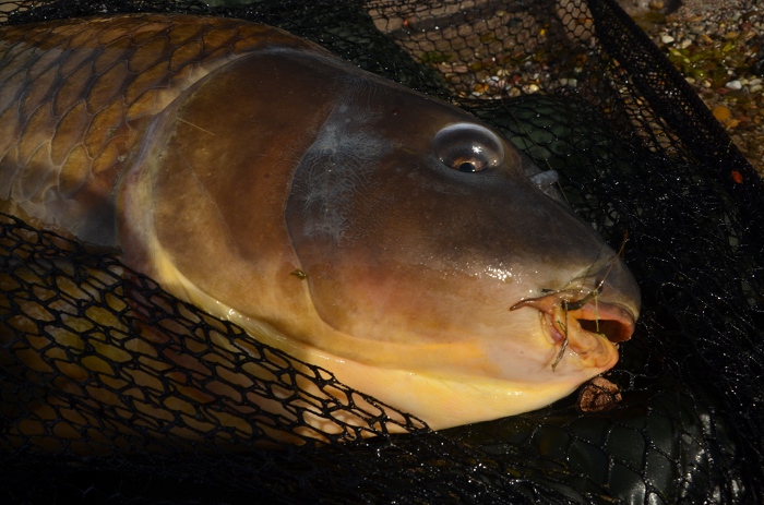 Gewässer Nummer eins schien noch im Tiefschlaf zu liegen. Lange konnte man keine Fischaktivitäten ausmachen, und der recht dünne Bestand an Fischen war auch nur sehr schwer aufzufinden. Nach zwei erfolglosen Nächten begab ich mich an Gewässer Nummer zwei, wo der Plan auch direkt am ersten Mittag aufging. Einer der sechs Fische die ich mir für die Saison vorgenommen hatte begrüßte mich mit dicken Bauch und ein zwei Blutegeln am Body…