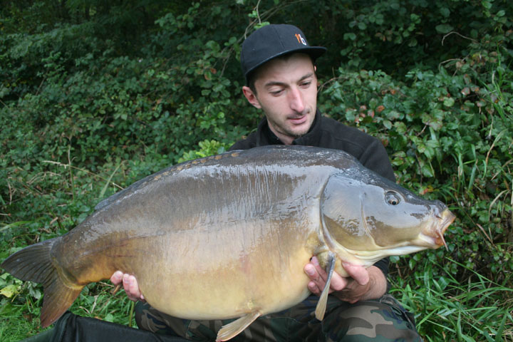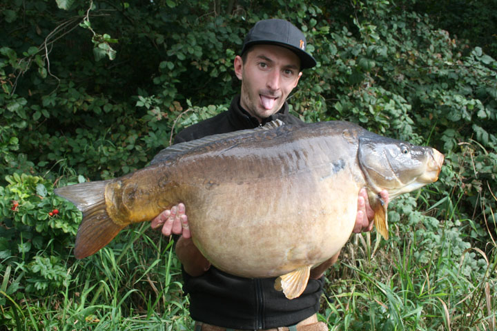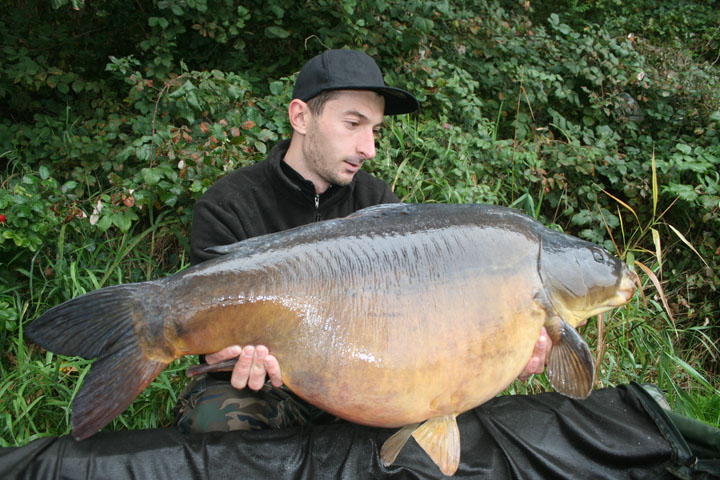 Er begann gerade mit dem Aufbau als sich plötzlich meine Rute nach links bog. Schnell schnappte ich diese und schon ging der Drill los. Was war das für ein Fisch? An einen Karpfen dachte ich bis dahin nicht so recht, denn kam sofort an die Oberfläche und marschierte quer durch den See. Als ich ihn sehen konnte, glaubte ich mei-nen Augen kaum: ein Spiegler und was für einer. Er war dick wie eine Kugel! Ich gab ihm den Namen „Flautzi“.