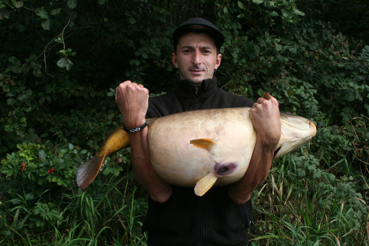 Dann kam der Abend und es war Zeit zu „moven“. Grade am Platz für die Nacht angekom-men, ich hatte die Bissanzeiger noch nicht eingeschaltet, klopfte mein Hänger gegen meine Ruten! Da war er: Mein zweiter Flussrun! Ich nahm die Rute auf und schon ging es los.Als Köder verwendete ich Boilies aus LT Fischmix. Er schwamm in die Strömung und es machte richtig Spaß ihn zu drillen. Nach 20 Minuten konnten wir ihn landen. Ich konnte es kaum glauben, als wir den Fisch über die Maschen des Köchers zogen, was sich in der harten Strömung als gar nicht so einfach erwies.