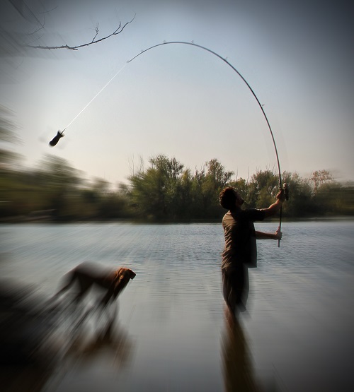 Am nächsten Mittag folgte ein ähnliches Szenario. Biss, Drill, Schlagschnur cut… noch bevor die Rute wieder im Wasser lag das selbe Spiel bei der anderen Rute, ich kochte förmlich vor Wut. Die Ruten lagen keine 10 Minuten und schon bekam ich den nächsten Biss. Kraftvoll zog der Fisch seine Bahnen bis er im Uferholz einiger umgestürzter Bäume Schutz fand. Brille auf, Flossen an und mit dem Kescher abschöpfen war der Plan. Es gelang mich auch doch auf halben Wege zurück hörte ich meine zweite Rute um Hilfe schreien.