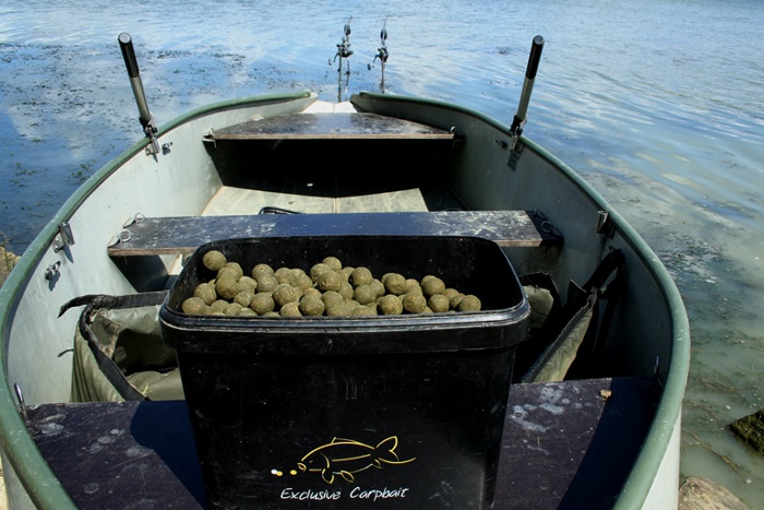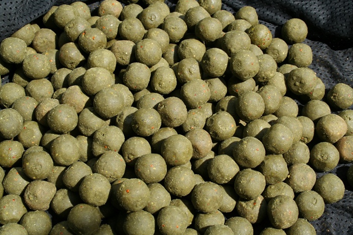 (Die Green Granada Boilies sind hoch attraktiv. Genau das richtige, wenn man so wie ich, bei sommerlich schlechten Wetterbedingungen wie Sonne und Windstille, eher wenig Futter verwenden will.)