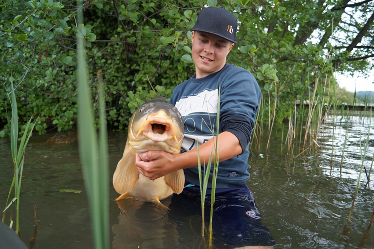 Das Ereignis, den Fisch zwischen Schilf und Geäst aus dem Wasser zu bekommen, zog sich über einige Minuten voller Spannung. Stefan gab nicht auf und somit konnte auch er zum ersten Mal anschreiben in dieser Saison.