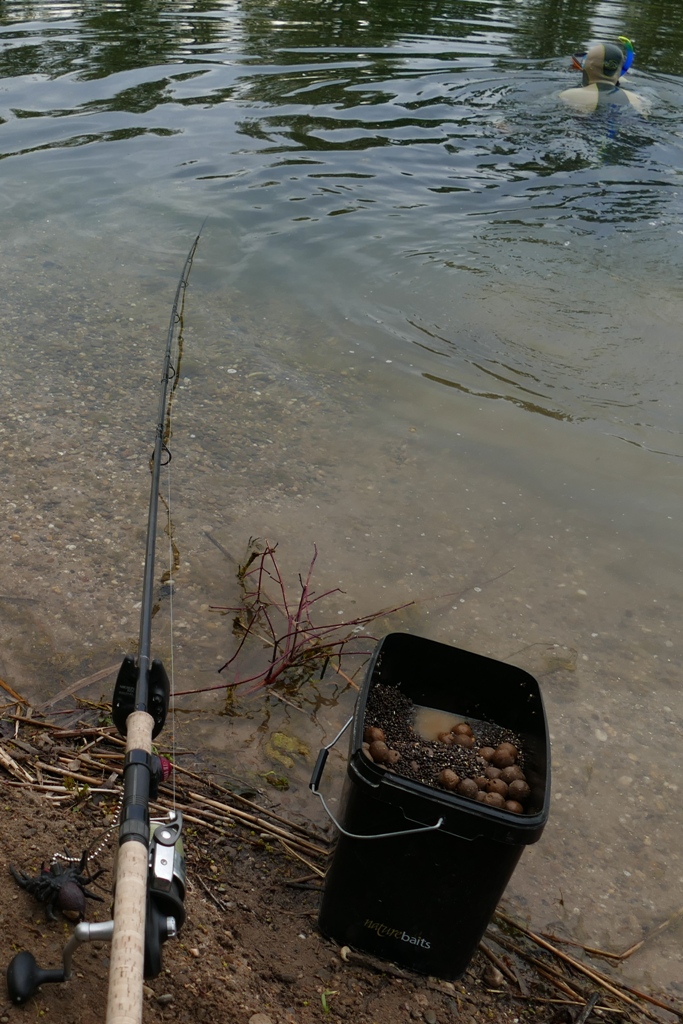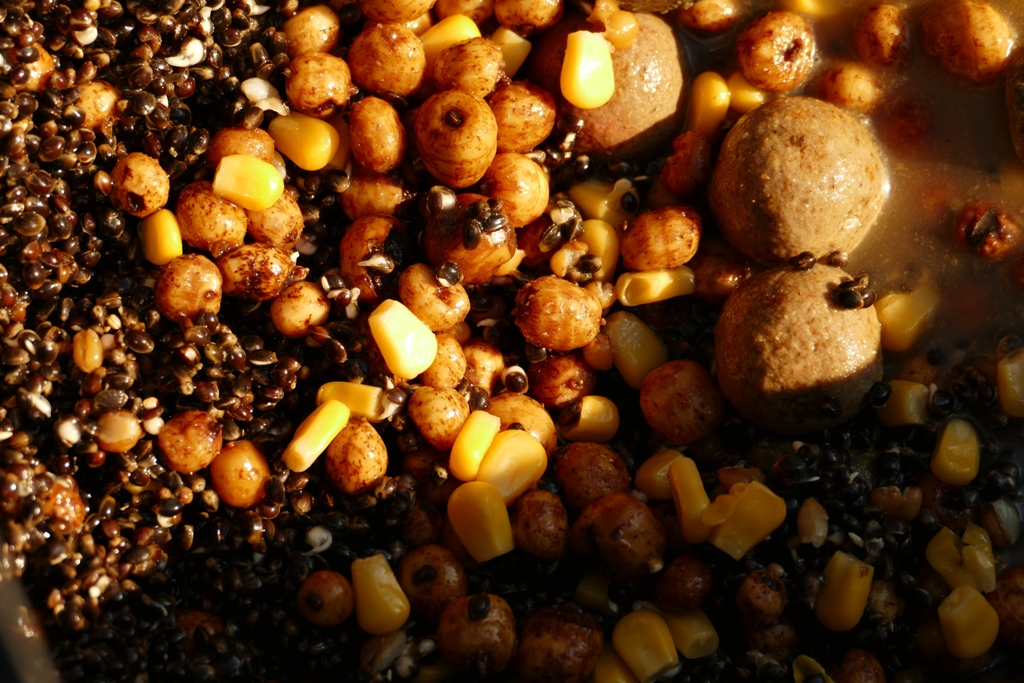 (Wenn ich ans Wasser kam, dann meist spontan, für kurze Zeit… Als Beifutter verwendete ich meist ne Schaufel Partikel mit ner Hand voll Boilies…)