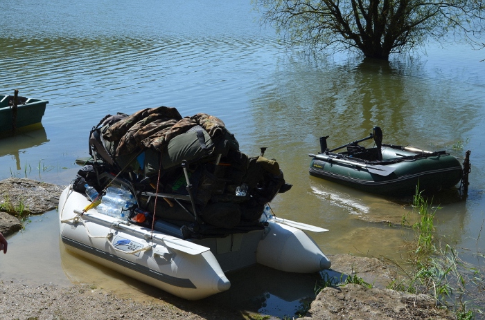 Euphorisch entluden wir das Auto und packten das Tackle in die Boote. Als wir fast fertig waren, fuhr plötzlich einer der Karpfenangler mit seinem Boot auf die andere Seite der Insel. Total entnervt schleppten wir unser vollbeladenes Boot erstmal zur anderen Seeseite und suchten dort nach einer anderen geeigneten Stelle für unser Camp. Keiner der Plätze war ideal und wir trauerten dem Platz auf der Insel nach, mussten aber schließlich das Tackle an der einzig halbwegs geeigneten Stelle ausladen die es gab.