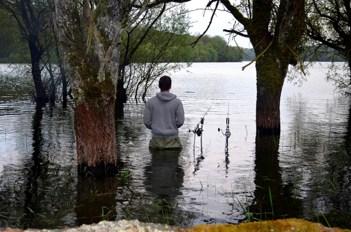 Nachdem wir die Zelte aufgebaut hatten und gegen Abend hin auch die letzten Raubfischangler verschwunden waren fuhren wir in die überschwemmten Gebiete um nach Spots zu suchen. Desweiteren legten wir noch zwei größere Futterplätze im tieferen an, so erhofften wir uns die Fische abfangen zu können, wenn diese ins Flache ziehen würden. Wir nutzen dabei den Platz, der uns geboten war und verteilten unsere Ruten.