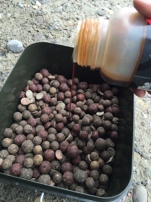 Insgesamt wurden so ca. 4 kg Kugeln großflächig verteilt und alle 3 Stunden die Spots mit zwei Kellen nachgefüttert. Obendrein die unterschiedlichen Ködergrößen um die Fische noch neugieriger zu machen. Oder erst einmal die Weißfische auf den Platz zu bekommen. Futterneid bringt sehr häufig den erhofften Erfolg.
