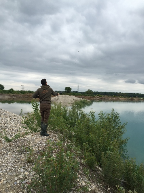 Ich fütterte reichlich am Ufer entlang, in etwa einer Strecke von gut 30 Metern. Mein Gedanke war schnellstmöglich die Karpfen auf dem Platz aufmerksam zu machen. Die lange Streuung sollte mir dazu verhelfen.
